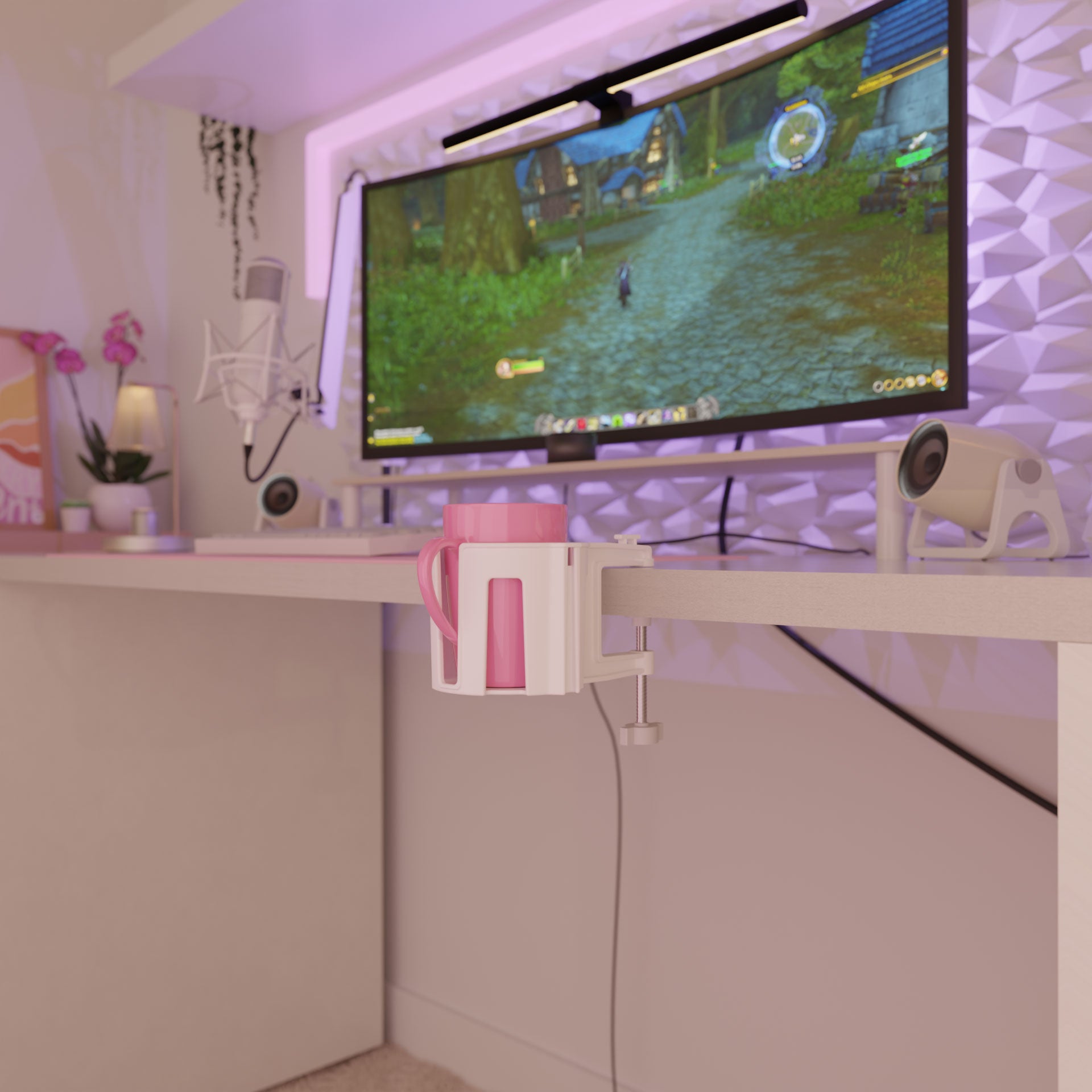 Desk looking more like a disaster zone? Between coffee mugs, headphones, and that one pen you can never find, clutter adds up fast—and so do the risks. One accidental elbow bump and your drink’s taking a dive straight onto your laptop. Cup-Holster clamps securely to your desk, clearing space and keeping your cup exactly where it belongs—out of the way, but always within reach. Clean, organized, and spill-free: just how your workspace should be.